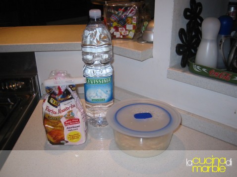 prendere 100 gr del precedente rinfresco, aggiungere 100 gr di farina e 50 gr di acqua tiepida