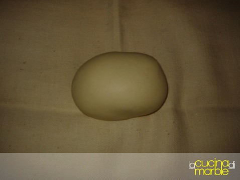 dividere l'impasto in tre parti di uguale peso, e metterlo a lievitare in luogo caldo per 20' coprendo ogni impasto a campana