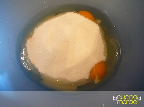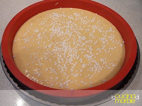 mettere in teglia e guarnire a piacere spolverizzando con zucchero semolato o, come in questa realizzazione, con granella di zucchero
