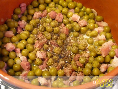 aggiungere quindi i piselli e portare a cottura