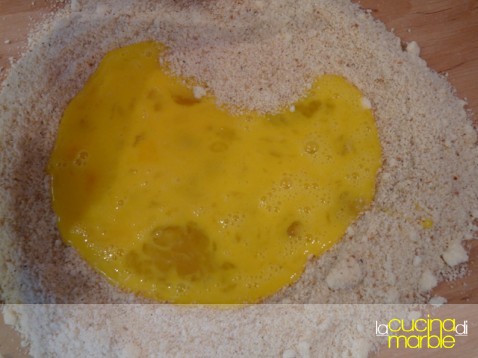 sbattere le uova e metterle al centro della fontana