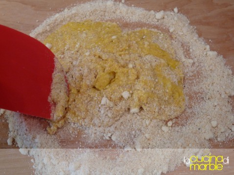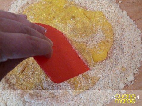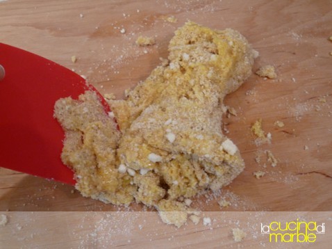 prelevando giro giro dalla fontana amalgamare il tutto fino ad ottenere un composto non troppo sodo