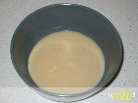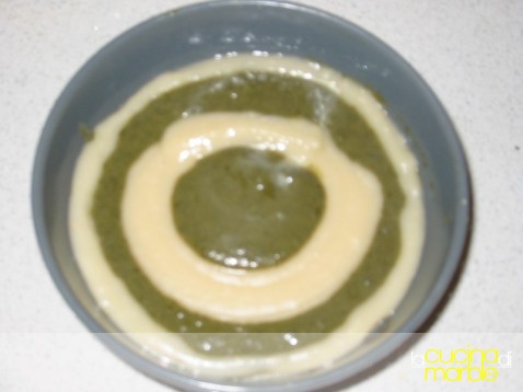 mettere un primo mestolino di una crema, poi al centro un mestolino dell'altra crema, così via fino a fare diversi cerchi