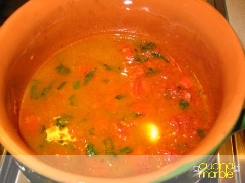 aggiungere poi il basilico o spezzato grosso o a foglie intere