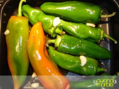 lavare ed asciugare i peperoni, estrarre il peduncolo cercando di non rompere il peperone