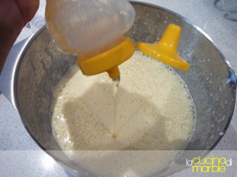 sciogliere il cioccolato con del latte (tanto quanto basta a rendere il composto più morbido e in modo da immergervi comodamente dopo i pezzetti di dolce)
