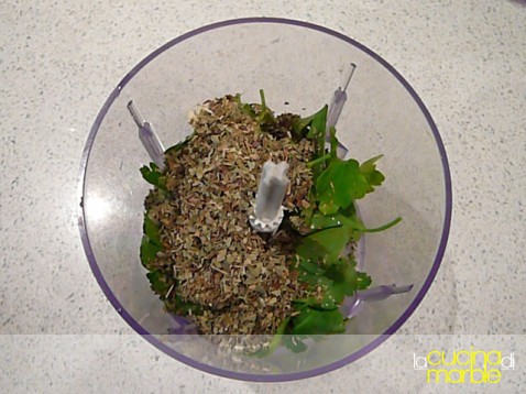 tritare il prezzemolo con l'aglio e l'origano