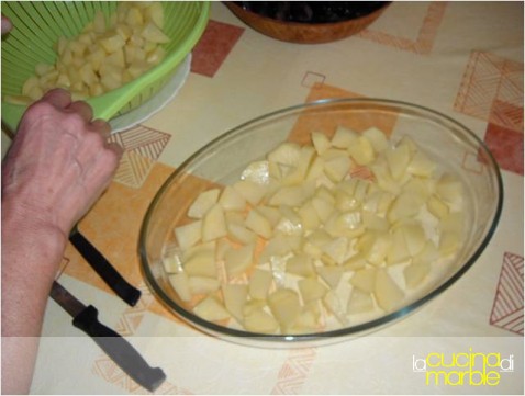 disporre uno strato di patate sul fondo della pirofila