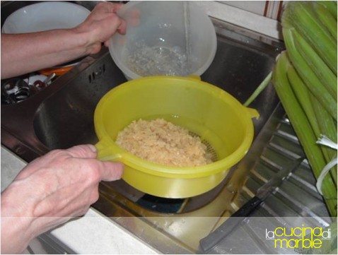 lavare il riso con acqua corrente e sgocciolarlo