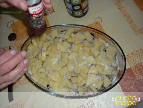 coprire con le ultime patate e spolverare con del pepe macinato all'istante