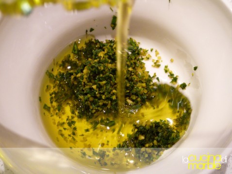 mettere il trito in un contenitore e aggiungere olio e succo di limone