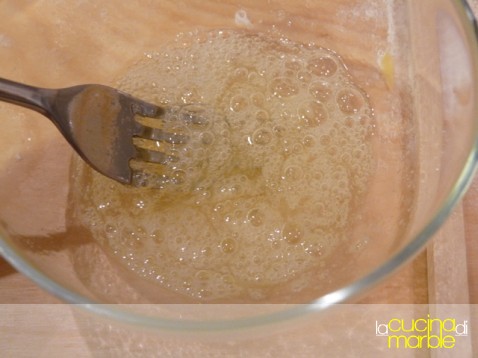 bene, andiamo a sbattere questa chiara in modo da romperla e a renderla fluida