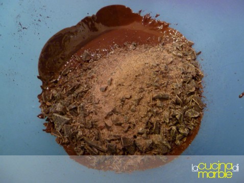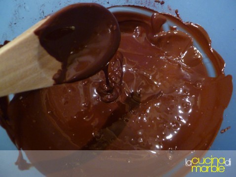 nota: ovviamente si può anche solo fondere semplicemente, poi però avremo bisogno del frigo per far solidificare la cioccolata