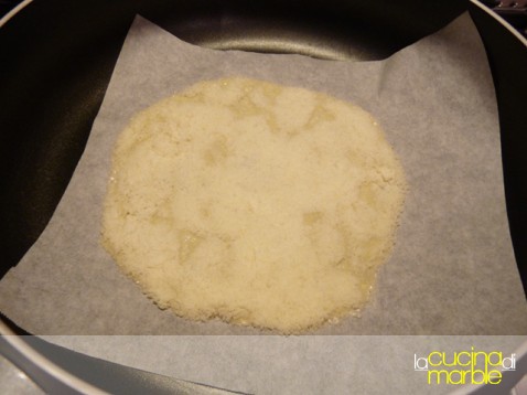 io mi stacco un po' dal procedimento classico che prevede di mettere il parmigiano direttamente in padella, preferisco prima spargerlo su un foglio di carta forno, come mai? si lavora molto meglio, quando il parmigiano sarà fuso basterà levare il foglio dalla padella, non occorrerà staccarlo dalla padella, rischiando di graffiarla o di non cogliere il momento giusto ;)