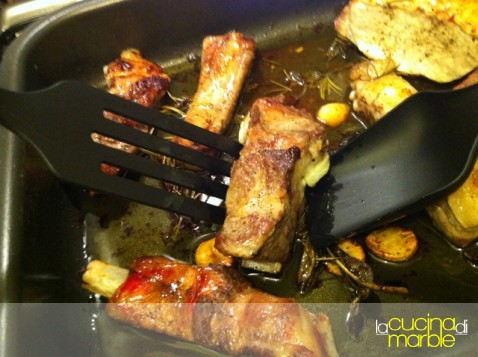 ed ora? praticamente ce ne dimentichiamo... inforniamo a 200° per un totale di circa 1 h e 1/2, avendo l'accortezza di girare i pezzi qualche volta, io l'ho fatto circa ogni mezz'ora