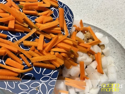 aggiungerle in ciotola con ceci e daikon
