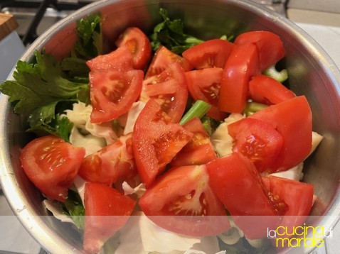 dopo aver ben lavato, sbucciato e mondato le verdure tagliarle a pezzettoni e riunirle in un pentolone capiente
