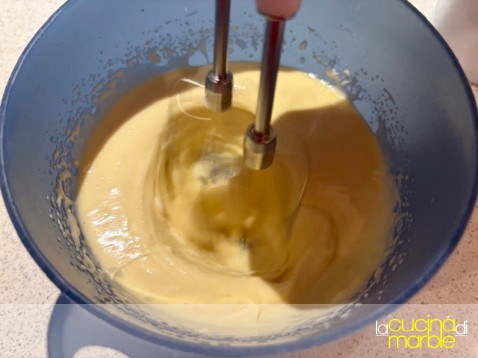 questa volta ho montato con le fruste elettriche, ma va benissimo anche amalgamare con una frusta a mano
