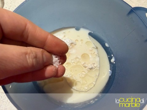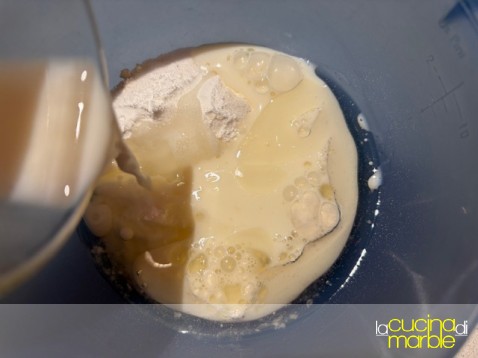 ho aggiunto poi olio, latte, il pizzico di sale, l'uovo