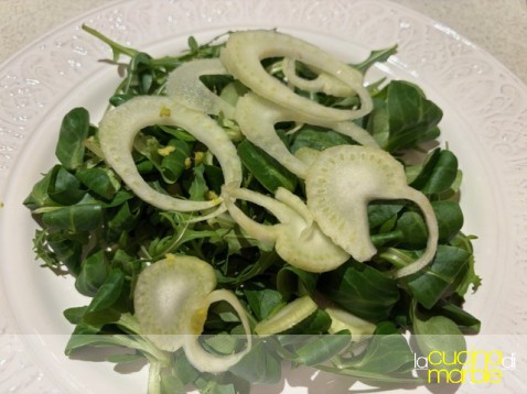 sopra aggiungere del finocchio tagliato a fettine sottili