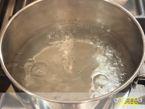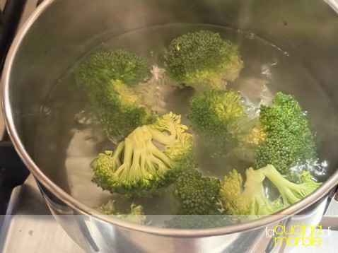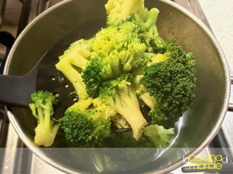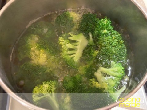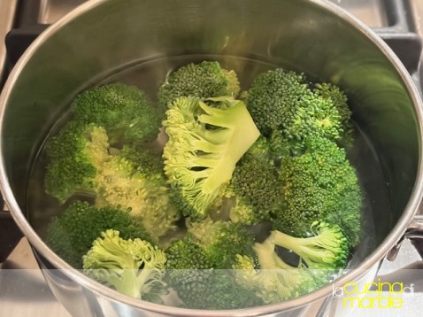 portare a bollore dell'acqua, appena bolle mettere i broccoli precedentemente separati a cimette, salare