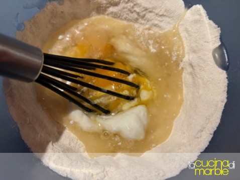 ho aggiunto poi gli ingredienti umidi: yogurt, olio, uovo