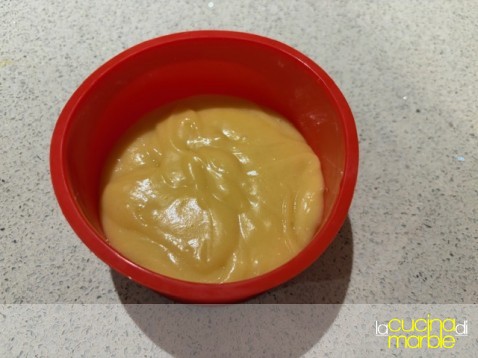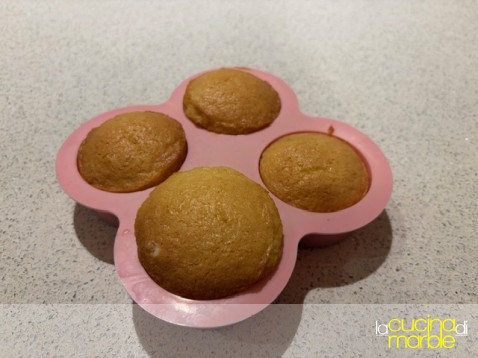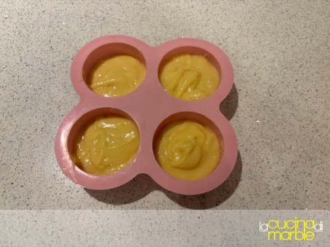 ho poi messo in stampi diversi: un po' di impasto in stampi da muffin, altro in stampo da tortine (entrambi in silicone)