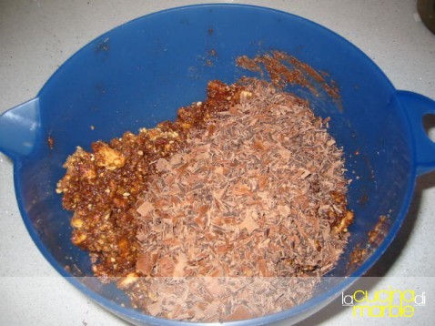 farlo rotolare in modo da ricoprirlo tutto di granella di biscotti