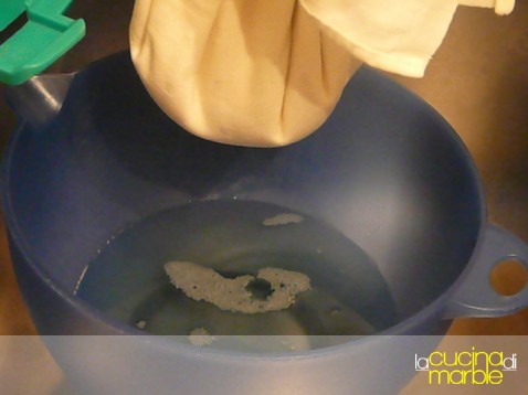 sul telo rimarrà una massa da far sgocciolare per ottenere il "formaggio"