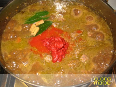 aggiungere la passata di pomodoro, il concentrato, l'alloro e la cannella,