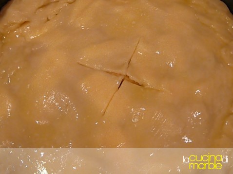 a piacere praticare un taglio al centro o altri decori (indispensabile comunque fare dei forellini per far sfiatare poi il vapore in cottura)