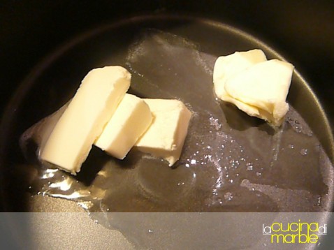 mettere in un tegame antiaderente il burro e farlo sciogliere a fuoco basso basso in modo che non frigga