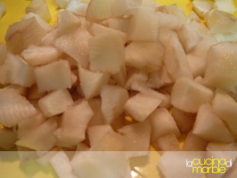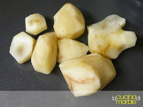 prepararsi il topinambur sbucciato e tagliato a tocchetti (può convenire metterlo in acqua acidula per non farlo annerire)