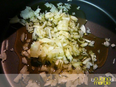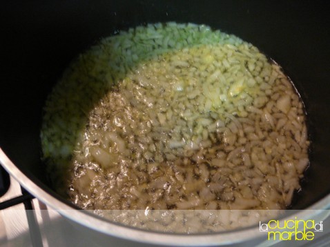 tritare la cipolla e farla rosolare in olio
