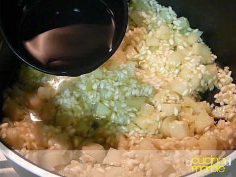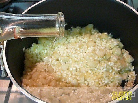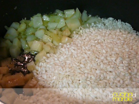 aggiungere il riso e farlo tostare