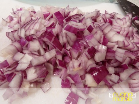 tagliare la trippa e la cipolla a dadini