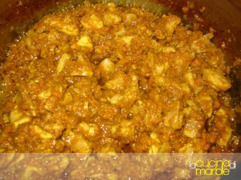 quando il tutto è ben insaporito aggiungere abbondante curry, amalgamare bene