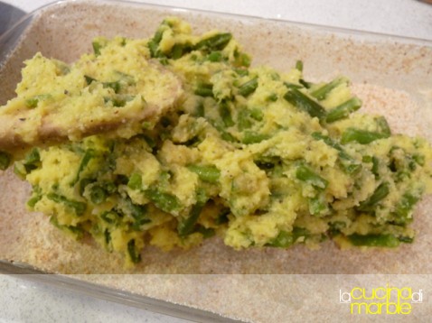aggiungere i fagiolini alla purea di patate, amalgamare