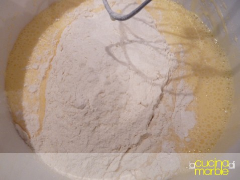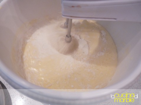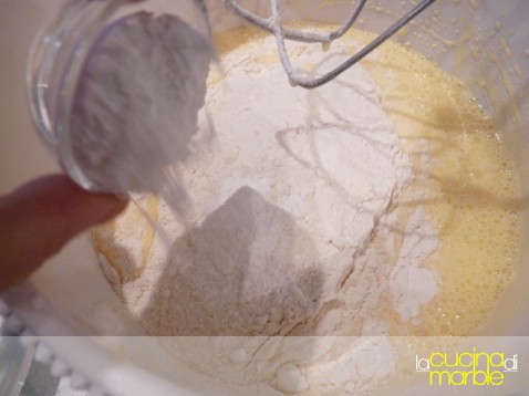 aggiungere infine la farina, la bustina di lievito ed il pizzico di sale e amalgamare il tutto
