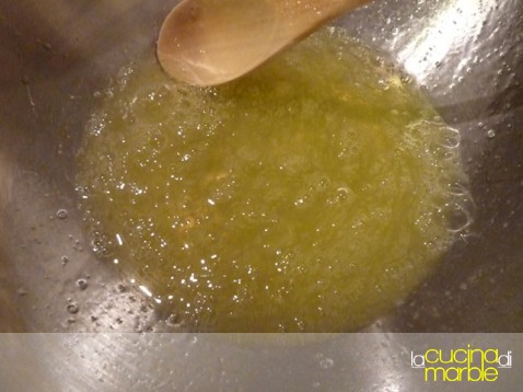 portare a bollore lentamente e rimestare fino a che lo zucchero non si sarà sciolto