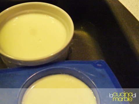 osservazione: non mi sono trovata bene con gli stampini da creme caramel, fanno poca "barriera" e la panna ne risente riempiendosi di bolle, molto meglio il bicchierino, come vedrete dalla foto la panna risulta liscissima e perfetta ;)