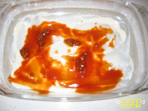 nel tegame di cottura mettere sul fondo uno strato di besciamella e del sugo