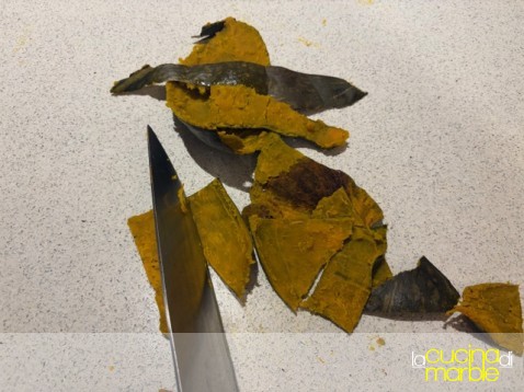 dopo aver tagliato le bucce a pezzetti le disponiamo su una teglia, o semplicemente su carta forno, e le inforniamo in friggitrice a 180° per circa 12'